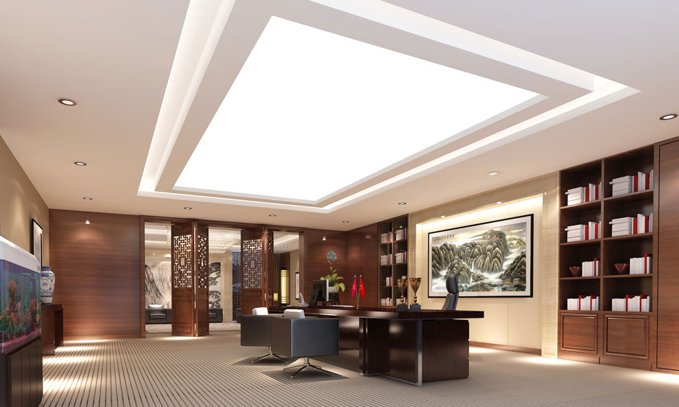 辦公室的整體布局賽凡保持了深色的中式設計,配合巧妙的燈光效果,讓辦公室整體在彰顯中式魅力與現代高級感之余,摒棄壓抑感,營造舒適的辦公環境。